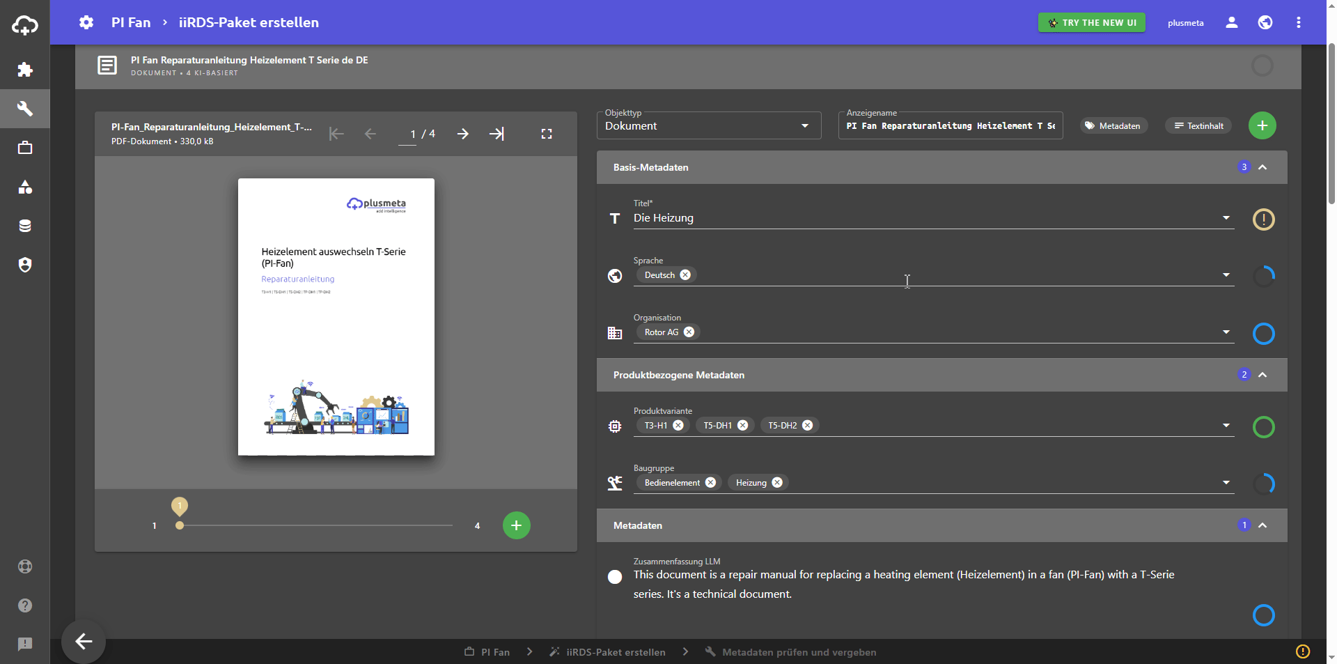 Info: Das Metadatum Titel hat ein paar Besonderheiten in plusmeta. Den Wert im Metadatenfeld Titel können Sie für jedes Objekt individuell anpassen. Mehr dazu erfahren Sie auf der Hilfeseite 'Anzeigename und Titel' im Abschnitt Titel ändern. - Durch einen Klick auf die Metadaten-Indikatoren die Metadaten abnehmen.
